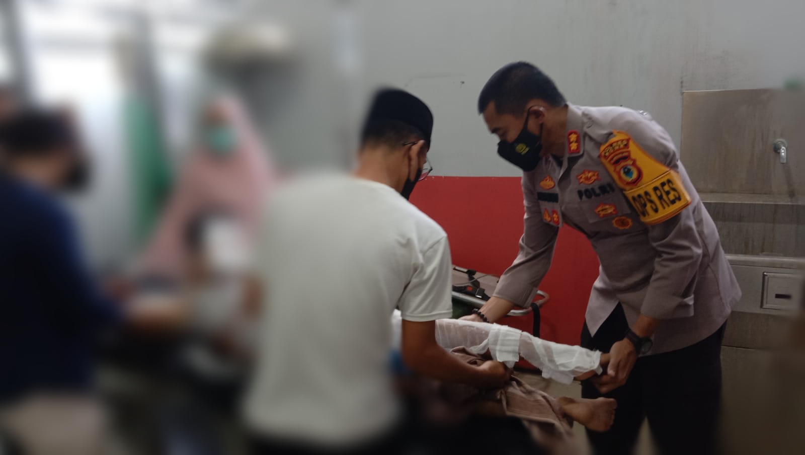 Kejadian bermula saat korban menendang ban yang sudah disiram bensin. Namun naas, korban terpeleset dan terbaring di atas bensin yang meluber di badan jalan.